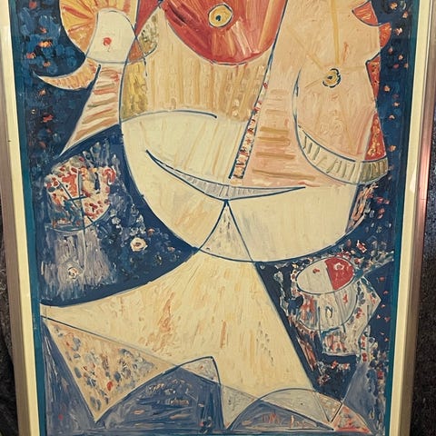 Bredde med ramme 68 cm og højde med ramme 99,5 cm.