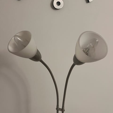 Skærm i grå stof. Højde 140 cm + skærm 22cm.