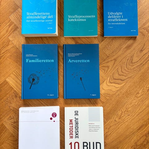 Jeg sælger disse jura bøger til både 1. 2. of 3. semester. Der er til alle fag man som elev kommer til at have. Bøgerne er købt helt nye I academic books og er de nyeste udgaver.