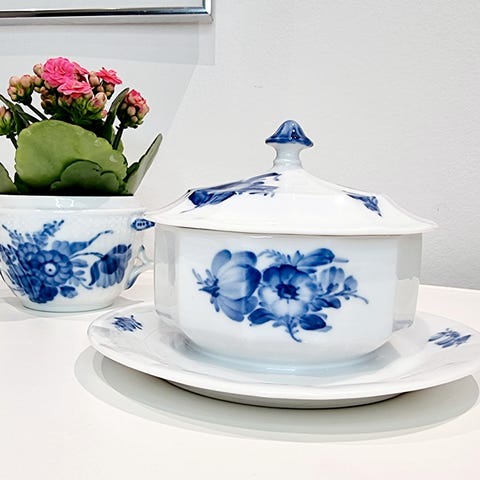 Blå Blomst Kantet sjælden sauceterrin med låg