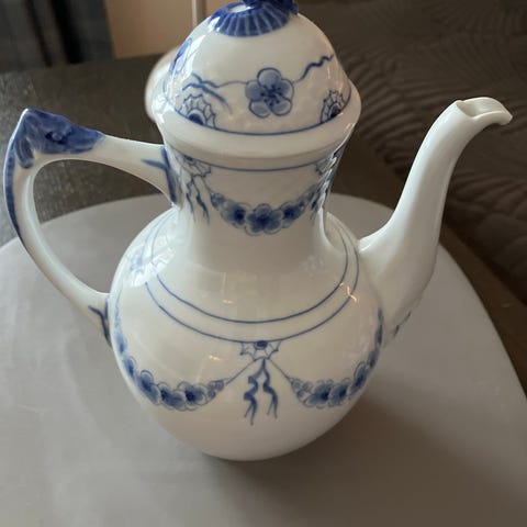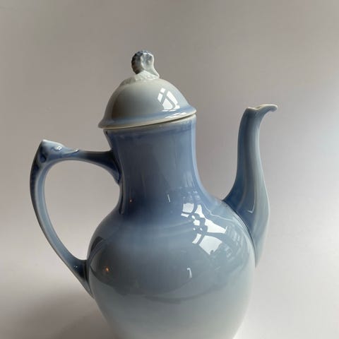 Flot Blåmalet/musselmalet riflet kaffekande fra B&G.