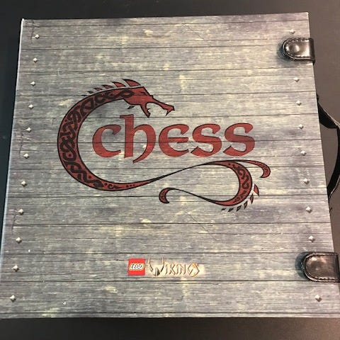 Fedt Lego skakspil med vikinger i smart kuffert.
