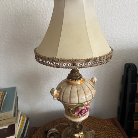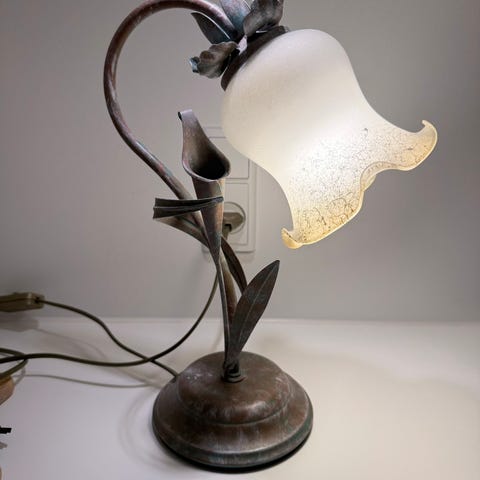 Desværre har den være knækket i halsen, det er limet og repareret.