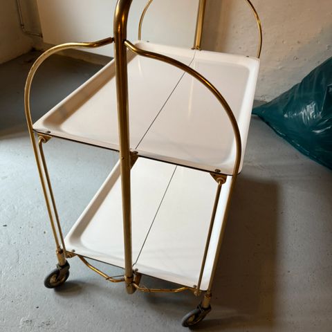 Bordet har to flader til flasker m.v. og er malet i slidstærkt maling, som ikke tager imod ridser og skrammer så nemt. Bemærk dog ridse på øverste plade (se billede). Derudover er der 3 rum til flasker.