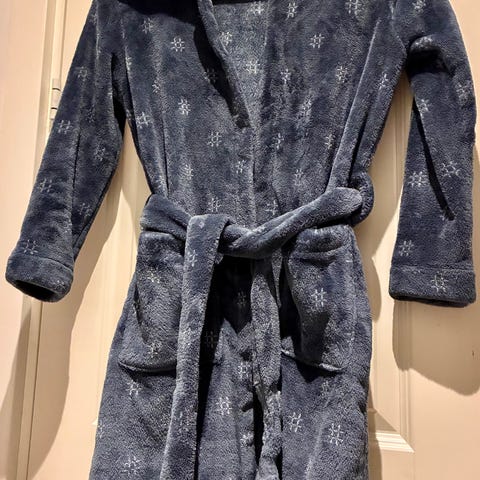 Lækker lun morgenkåbe med hætte, bælte og to lommer. Str. 6-8 år.
