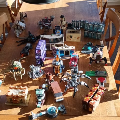 Har massere af blandet Lego. Jeg kan ikke garantere at enhver del stadig er der. Men jeg ved at de er blevet bygget en enkelt gang allesammen, også pakket ned igen.