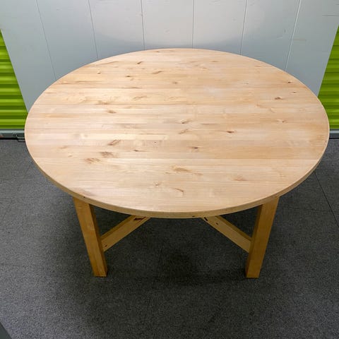 Smukt klassisk bord i massivt sæbebehandlet lyst ahorn træ. Bordet er udført i høj kvalitet af Brd. Andersen (nu Andersen Furniture). Det klassiske runde bord er designet med udtræk til to plader. Bordet sælges med en tillægsplade (50 x 110 cm - finér) - plads til 6 personer.