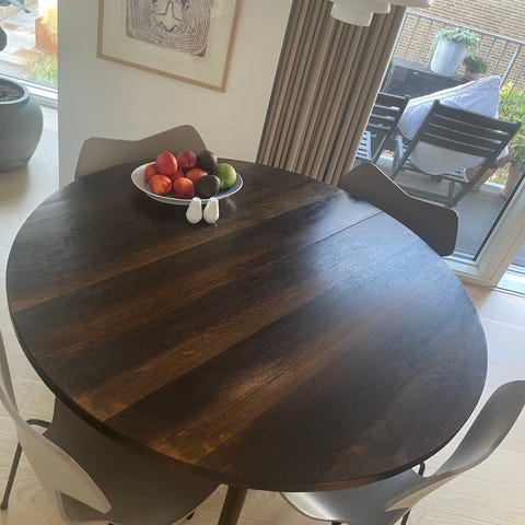 Lyst spisebord i massivt ahorn træ med udtræksfunktion