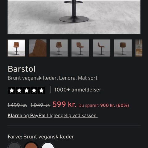 Tectakehome barstol sort læder med krom stel