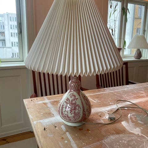 Lampen har en karakteristisk rød stregtegning på en lys baggrund.