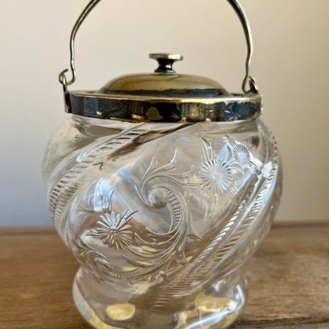 Kiksespand med låg og blomsterdekor og uden skår