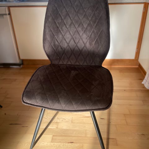 6 Spisebordsstole Navarra i antracit. Næsten ikke brugt, så stort set som nye. 350 kr stykket.