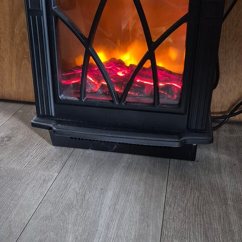 Hyggelig elektriske pejs der kan flyttes rundt.