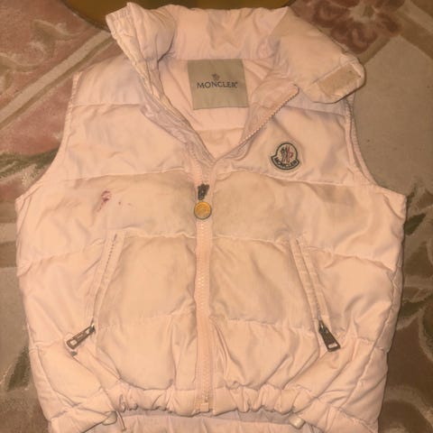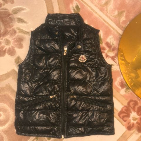 Moncler børnevest i størrelse 140, unisex model i grå farve. Vesten er lavet af dun, hvilket giver varme og isolering. Designet til børn med fokus på funktionalitet og komfort.