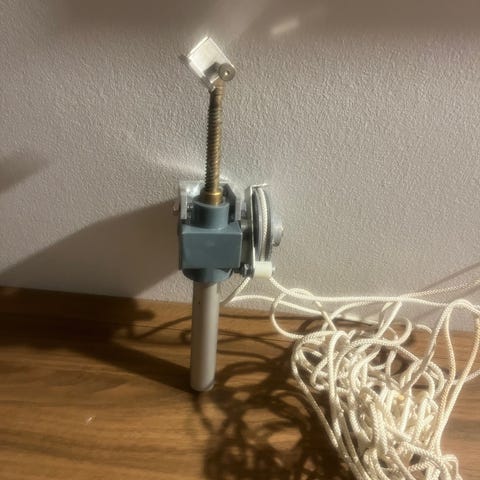Vinduesåbner med snække og lang snor. Passer bl.a. til Velux. Fuldt funktionsdygtig men synlige brugsspor.