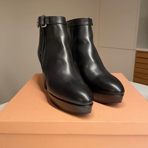 Den indvendige længde er 24 cm, hælen er 13,5 cm, plateau er 6 cm, selve skaftet er 14 cm, skaftvidde er 23 cm