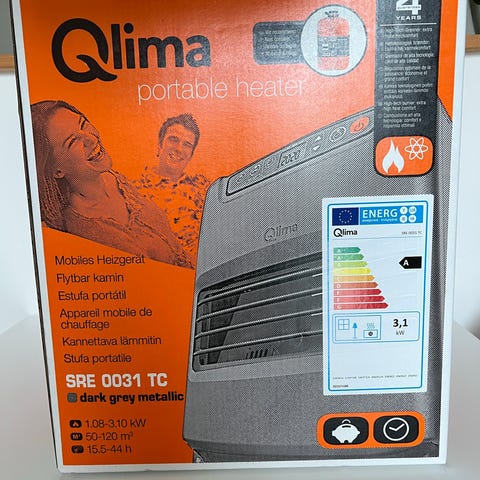 Sælger Qlima kaminovn SRE 8040 TC uåbnet tilstand, samt to dunke brændstof som også er uåbnet.