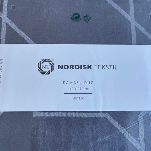 Skøn grå damaskdug i lækker kvalitet, fra NT/Nordisk Tekstil, dugen kan bruges på begge sider, 80% bomuld/20% polyester, er mere rigtig grå end billederne viser, brugt 1-2 gange