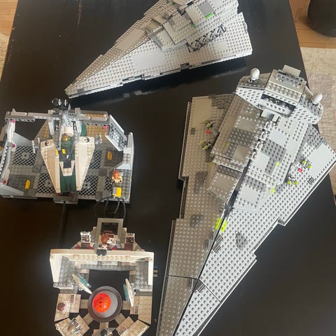 • Delvis General Grievous’ Starfighter (8095 fra 2010 – flere store grå dele, tan base, cockpit m.m.). Yderligere dele burde være i kassen til at samle det hele.