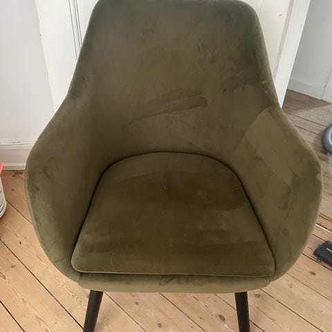 Rigtig flot og nærmest ny lænestol i velour, som er brugt i kort tid. Den sælges, da den er kommet i overskud. Nypris 2800 kr.