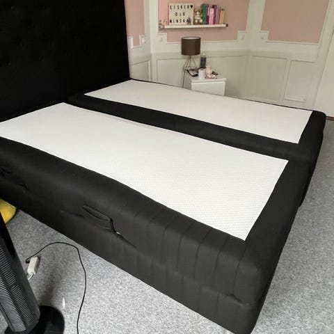 IKEA elevationsseng med justerbar madras. Sengen har en Dunlopillo samt topmadras fra Dreamzone. Indbygget fjernbetjening til justering af sengens position. Sengen er designet til at give individuel tilpasning af liggeposition og komfort. Fjernbetjeninger er "opgraderet" med magnet på sengekanten.