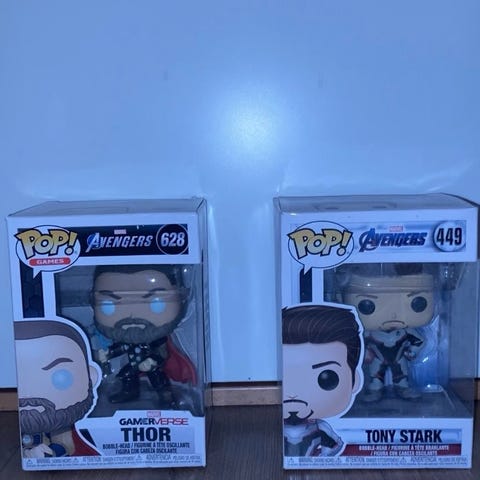 Funko Pop samling bestående af figurer fra Marvel Avengers og Star Wars serierne. Inkluderer karakterer som Captain America, War Machine, Iron Man, Star Wars Mandalorian, James Bond og andre. Figurerne er i indpakket tilstand i deres originale bokse.