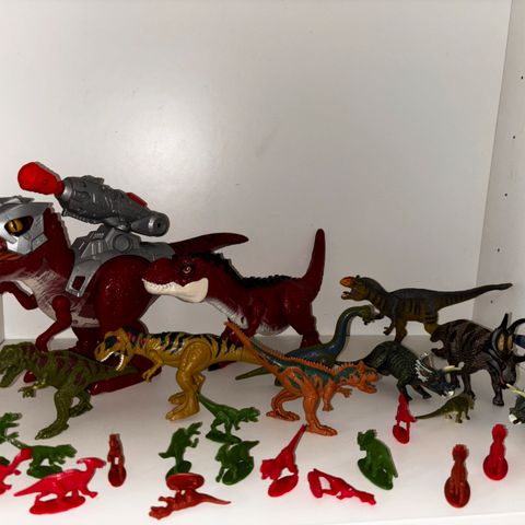 Der er en t-rex, tiger og en elefant. De er brugt med nogle brugsspor men stadig fine.