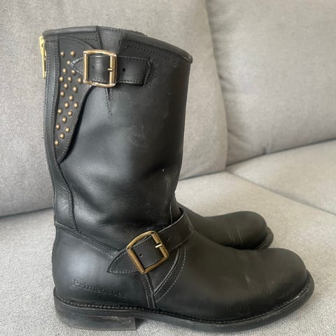 Jeg kan ikke komme til at måle den indvendige længde, men min fod er 25.5 cm lang, og de passer fint. Hælen er 2,5 cm, selve skaftet er 19 cm