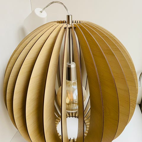 Søgeord: pendellampe, træpendel, designlampe, pendellampe i træ, loftlampe, spisebordslampe, moderne belysning, naturlig belysning.