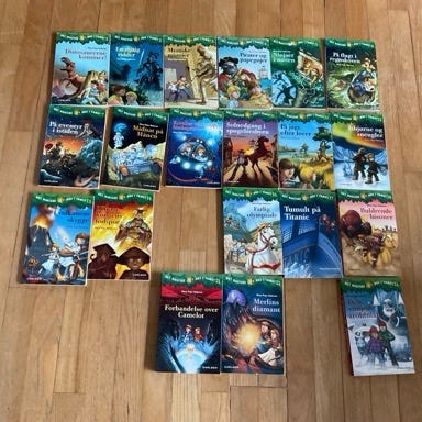 Flere forskellige bøger i serien det magiske hus i træet