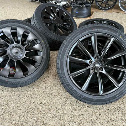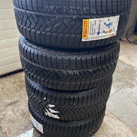 Originale tesla model y alufælge med Pirelli Winter Sottozero 3 tesla godkendte vinterdæk med lyddæmpning str. 255/45-19 som nye med 8 mm. Mønster, med dæktryk sensor, produceret i 2025, afbalanceret og klar til montering...