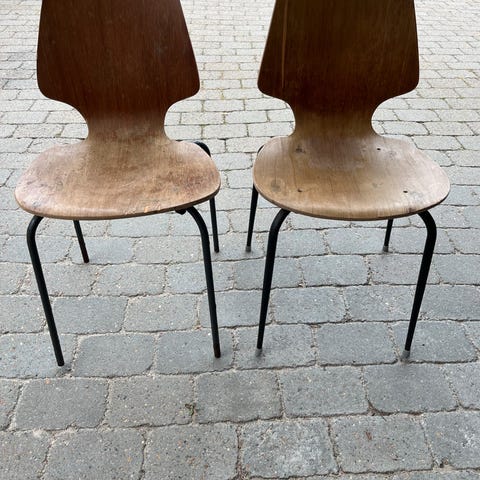 Stabelbare retro spisebords stole med fast ryg og patina - 75kr pr stol - mængde rabat gives