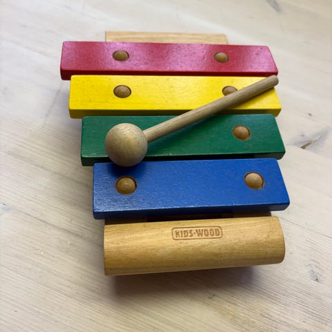 Kuds- Wood Xylofon træ legetøj med farverige tangenter i blå, grøn, gul og rød. Legetøjet er lavet af træ og designet til børn.