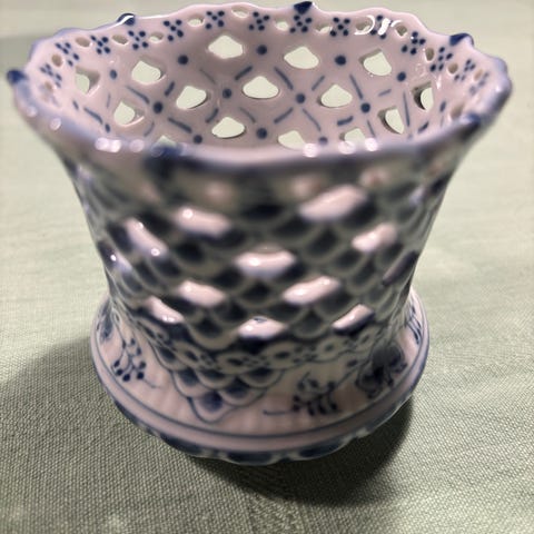 To fyrfadslys porcelæns bægre fra Royal Copenhagen- med guldtryk, musselmalet mønster. De er som ubrugte.