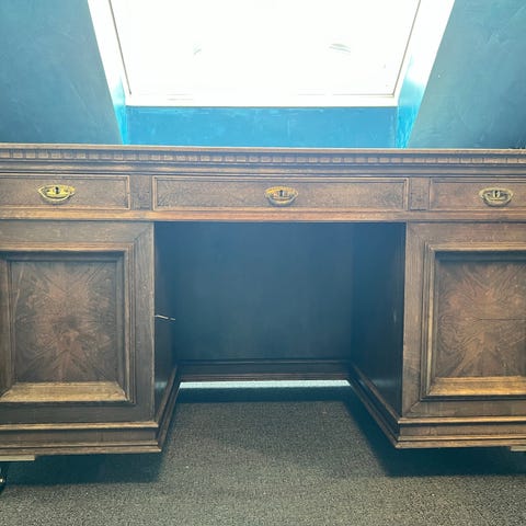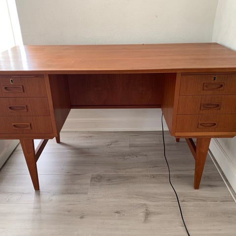 Skrivebord med skuffesektion i træ og metal