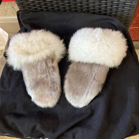 Bløde og varme luffer i ægte ruskind og kaninpels. Ubrugte.