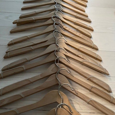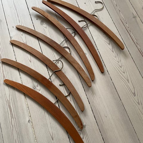 Jeg har 45 bøjler som jeg sælger. Det er hvide træ bøjler som normalt koster omkring 30 for fem.