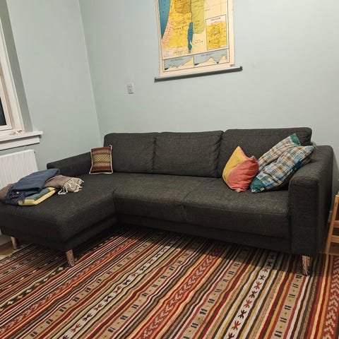 Giving away an ILVA grey 3-seat sofa with matching pouf.