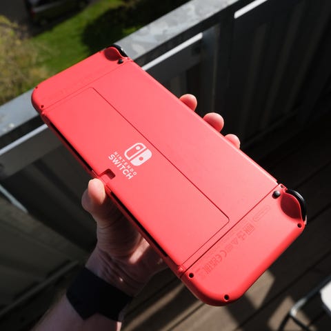 Konsol, Dock og Joy-Cons er i Mario Red farve.