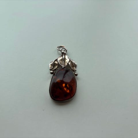 Rav vedhæng med sølvkæde