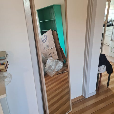 Vægspejl, b: 30 h: 30, Helt nyt Ikea Hylkje Spejl. Super flot med effekt. Special film beskytter mod fragmenter hvis glasset går itu. Kan bruges i vådrum. Sættes op med det medfølgende dobbeltsidet klæbende tape.