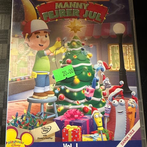 Disney Handy Manny Manny fejrer jul DVD med juletema. Inkluderer episoder med Handy Manny og hans værktøjer, der fejrer julen. Velegnet til børn og familier.