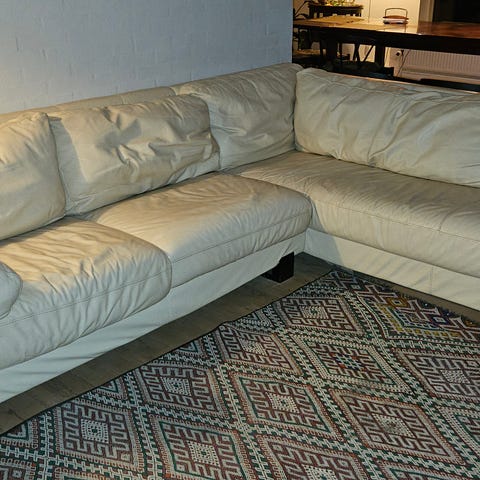 Hej vi sælger vores sofa den har en del slidmærker men selve komforten i sofaen der sidder man rigtig godt det en rigtig flyder, sofaen er ægte læder