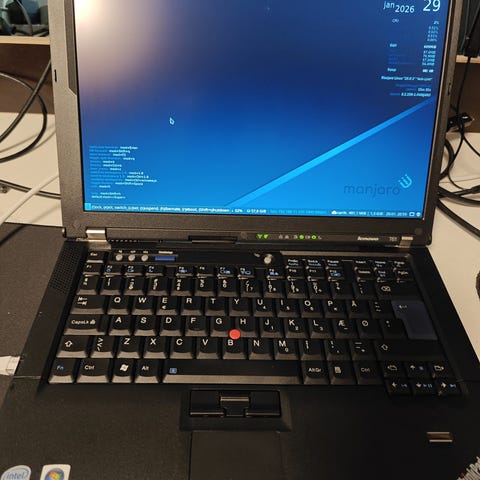 Retro ThinkPad, det er modellen med Nvidea grafik, Quadro NVS 140M og Core 2 duo. Med bl.a. fingerprint, kamera, kortlæser, firewire, VGA, S-video, WIFI/Bluetooth, CD/DVD brænder.