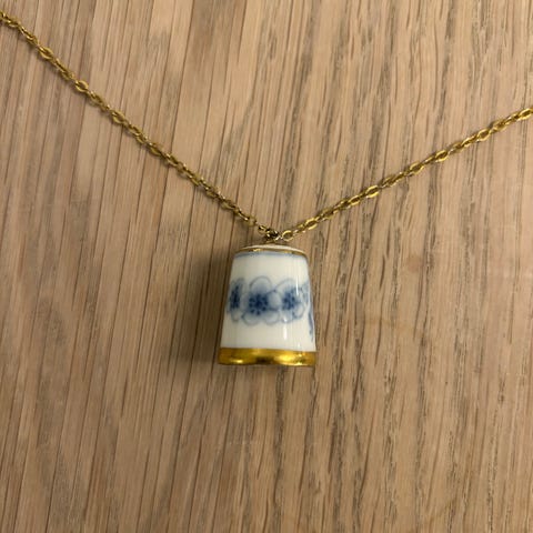 Klassisk halskæde med vedhæng udformet som et fingerbøl fra Bing & Grøndahl.