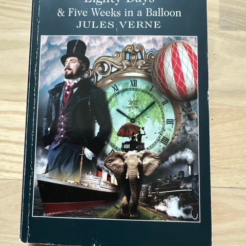 5 uger i Ballon (softcover, illustreret), Jules Verne, Riou, genre: eventyr, Hermed en Hernov Jules Verne-klassiker med Rious originaltegninger. Udgivet i paperback i 1979.