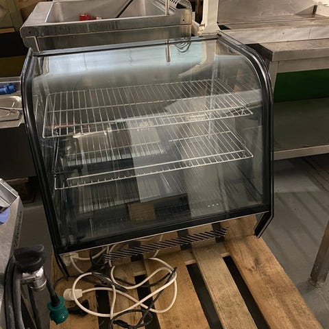 Mål: 42 x 37 x 82.5 cm - Kølemonteren er brugt til at opbevare emballerede varer, som romkugler, chokolade mv. Det er brugt i en butik. Den er købt i 2024, så der er stadig nogle måneders garanti på det. Det står som nyt, nypris i dag ved Expondo er kr. 3492,-