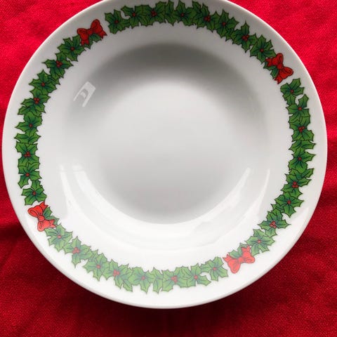 Jul skåle med julemotiv i form af en nisse og kaniner. Skålene er dekoreret med detaljerede illustrationer i varme farver, velegnet til brug i juletiden. Småkager eller risengrød…