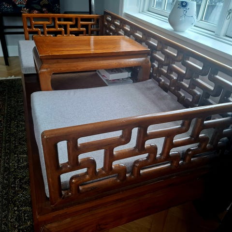 Kinesisk daybed i lakeret elmetræ og flet