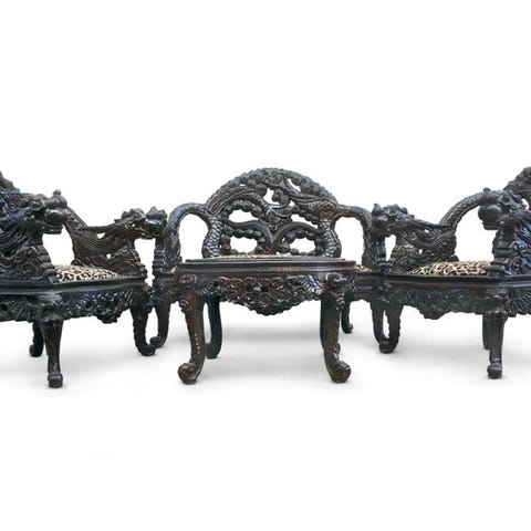 Kinesisk daybed i lakeret elmetræ og fletværk.